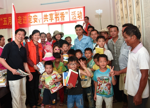 5月29日,海口分公司聯(lián)合海南廣播電視總臺新聞廣播《百草園》欄目,共同開展“走進(jìn)定安,共享書香”愛心捐助和營銷活動。60多名海汽志愿者和百草園聽友參觀了擁有三百多年歷史的定安新竹鎮(zhèn)次灘村和被評為全國學(xué)雷鋒活動示范點(diǎn)的定城鎮(zhèn)多校村“知海書屋”。??诜止緸榇螢┐逦幕液?ldquo;知海書屋”贈送圖書、籃排球和羽毛球拍等,以實(shí)際行動支持社會主義新農(nóng)村建設(shè),彰顯企業(yè)的社會責(zé)任。
