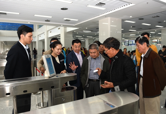 座談會(huì)開(kāi)始之前,姜宏濤、劉海榮、王修奮等陪同老干部參觀新落成的??谄?chē)總站,姜宏濤董事長(zhǎng)親自當(dāng)起了“向?qū)?rdquo;,向老干部介紹??谄?chē)總站現(xiàn)代化的自助售檢系統(tǒng)、智能化調(diào)度系統(tǒng)、信息發(fā)布系統(tǒng)、安防監(jiān)控系統(tǒng)以及先進(jìn)的人臉識(shí)別、車(chē)牌識(shí)別,車(chē)輛自動(dòng)檢測(cè)、自動(dòng)報(bào)班等功能。老干部們被眼前一座現(xiàn)代化、智能化、生態(tài)型道路客運(yùn)樞紐站所震撼,對(duì)公司近年來(lái)發(fā)展成果給予點(diǎn)贊。